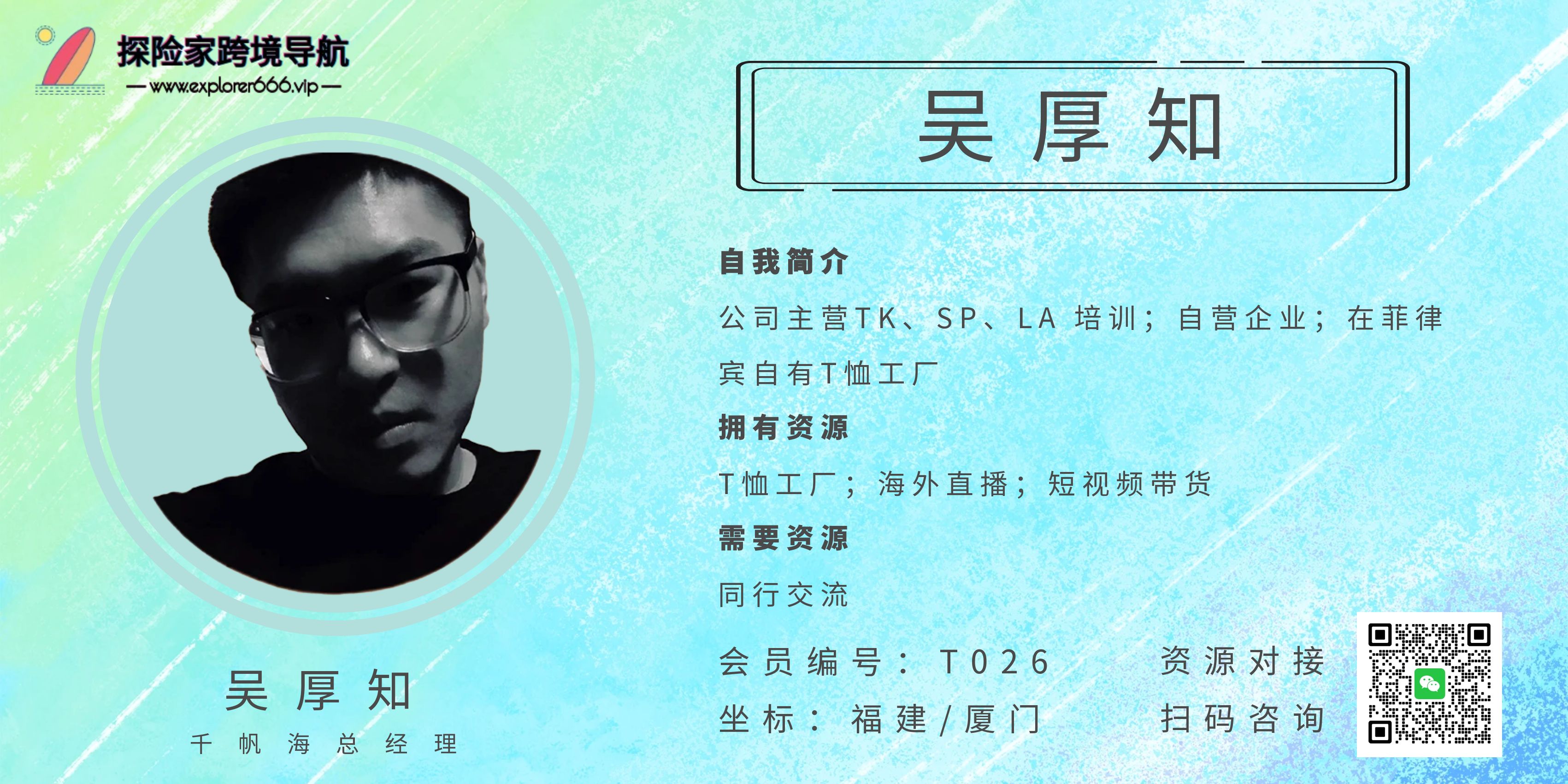 自我介绍:公司主营TK、SP、LA 培训;自营企业;在菲律宾自有T恤工厂